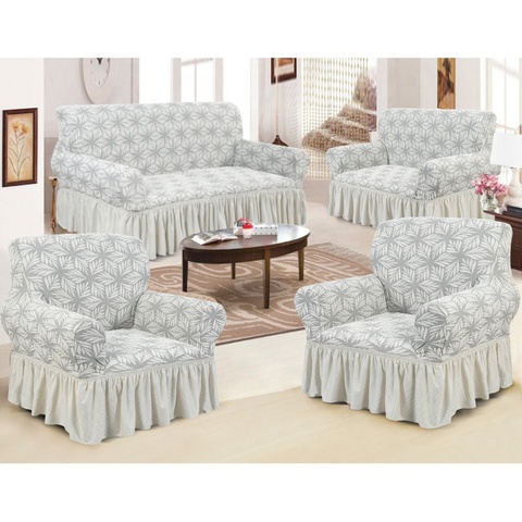 ספה ruffle גיאומטרי מודרני כריכה סופר אלסטי עם חצאית מודפסת עבור ספה שלושה מושבים